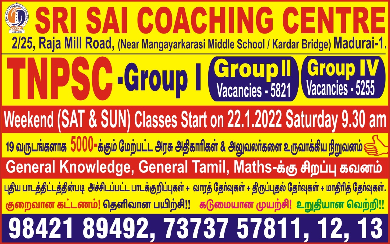 TNPSC Group Coaching Class Start on 22.01.2022 onwards and admission start now.